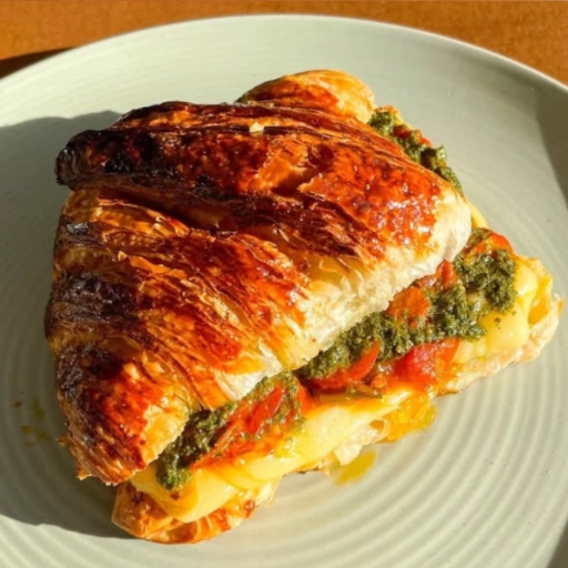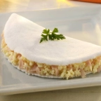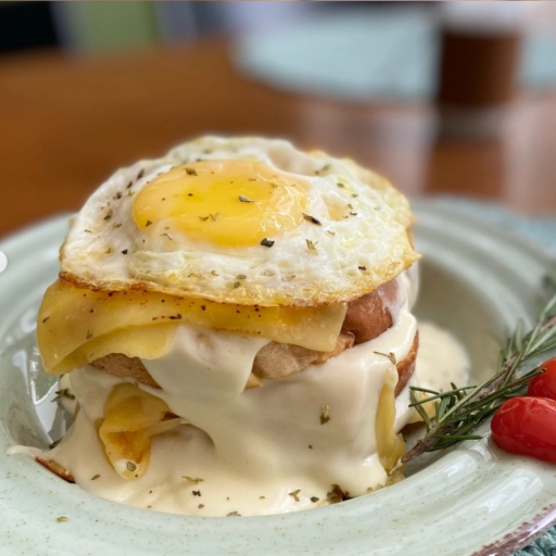 pão de forma + mussarela + presunto + molho bechamel e ovo