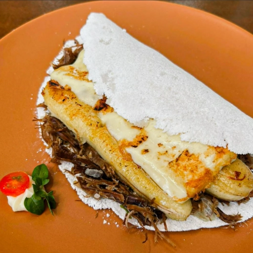pão brioche + doce de leite + banana frita + queijo coalho + Castanha de caju